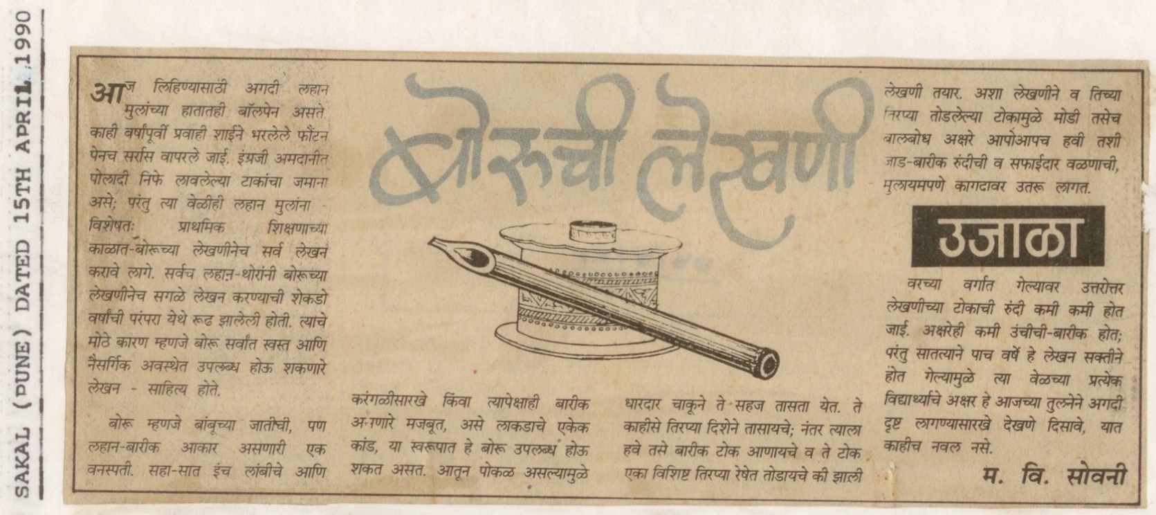 बोरूची लेखणी (दैनिक सकाळ, पुणे, १५ एप्रिल १९९०) वाचा