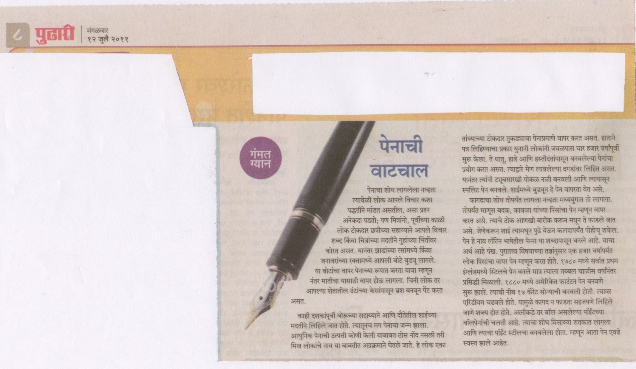 पेनाची वाटचाल (दैनिक पुढारी, पुणे, १२ जुलै २०११) वाचा