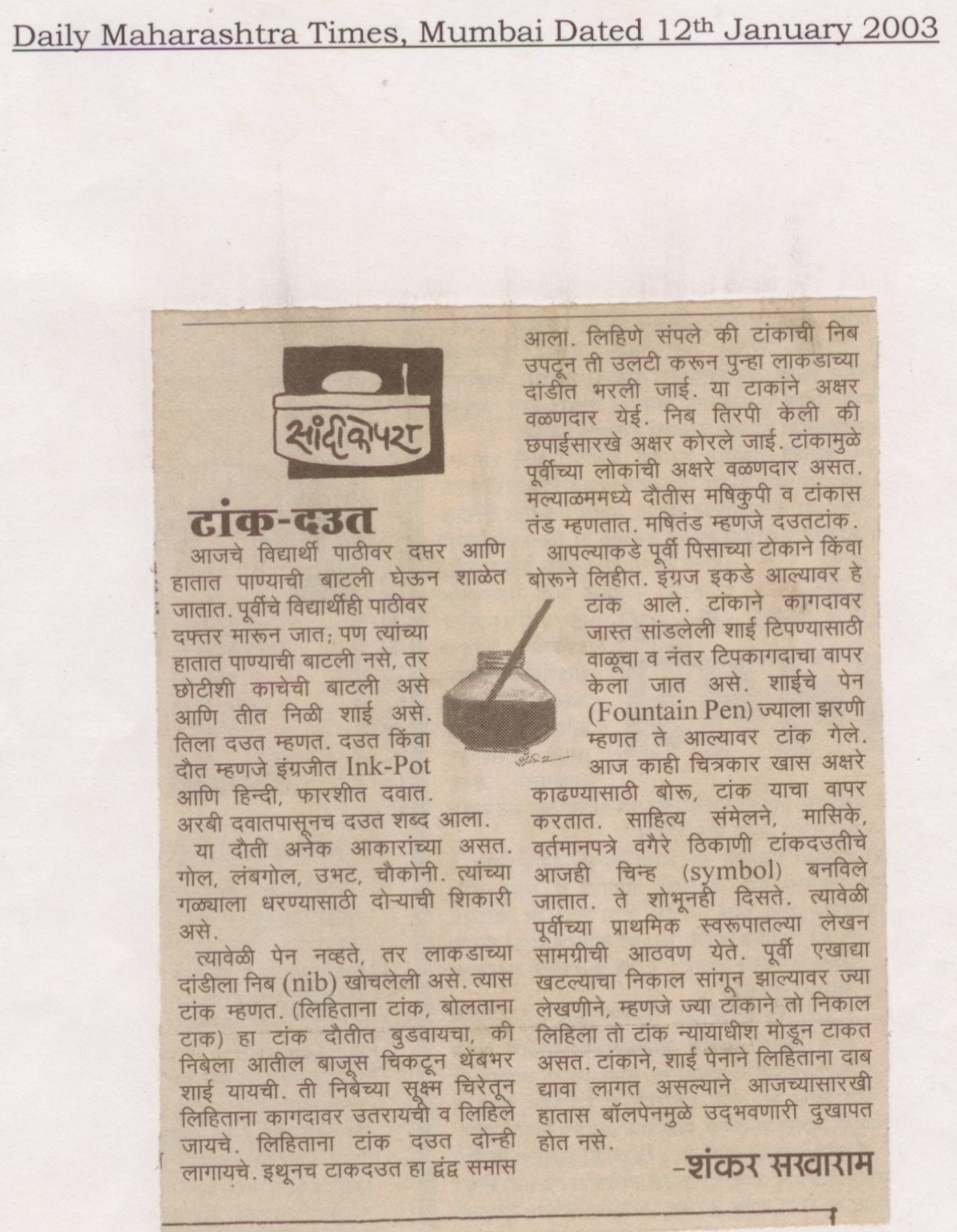 टांक – दउत (दैनिक महाराष्ट्र टाईम्स, मुंबई, १२ जानेवारी २००३) वाचा