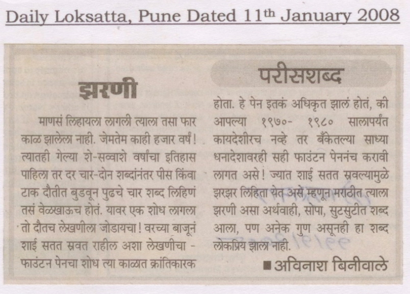 झरणी (दैनिक लोकसत्ता, पुणे, ११ जानेवारी २००८ ) वाचा