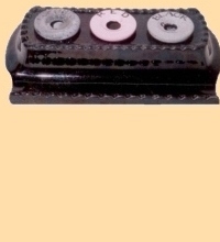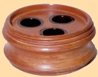 यांत्रिक पद्धतीने लाकडी ठोकळ्यावर कोरलेली वर्तुळाकृती दौत. ८ से. मी. व्यास, ५ से.मी. ऊंची, शाईची भांडी ठेवण्यासाठी कोरलेल्या खोबणी, खोबणीत चपखल बसणारी प्लॅस्टिकची तीन शाईपात्रे.