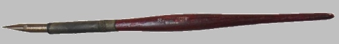 अॅल्युमिनिअमची वर्तुळाकृती दौत. ८ से. मी. व्यास, ५ से. मी. ऊंची, शाई ठेवण्यासाठी प्लॅस्टिकचे काढता घालता येणारे शाईपात्र, डब्याच्या झाकणाप्रमाणे बीजागरी बसवलेले खोलगट गोल झाकण, लेखणी ठेवण्यासाठी पाच छिद्र.